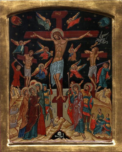 أيقونة الصليب هي تذكير للمؤمنين بالفداء والثمن الغالي الذي دفعه رب المجد من أجل التصالح مع الله، وتلفت نظر المؤمنين إلى كيفية الصلب، وكيف أن السيد المسيح البار صُلب مع الأشرار، وأن أحد اللصين لما آمن بالمصلوب وأعترف بربوبيته استحق قول السيد المسيح له “اليوم تكون معي في الفردوس” (لوقا 43:13)، كذلك صورتي العذراء مريم والقديس يوحنا الإنجيلي بجانب صورة السيد المسيح له المجد مصلوباً من هنا ومن هناك هي إشارة إلى وقوفهما عند صلب المسيح قبل موته (لوقا 26:19).