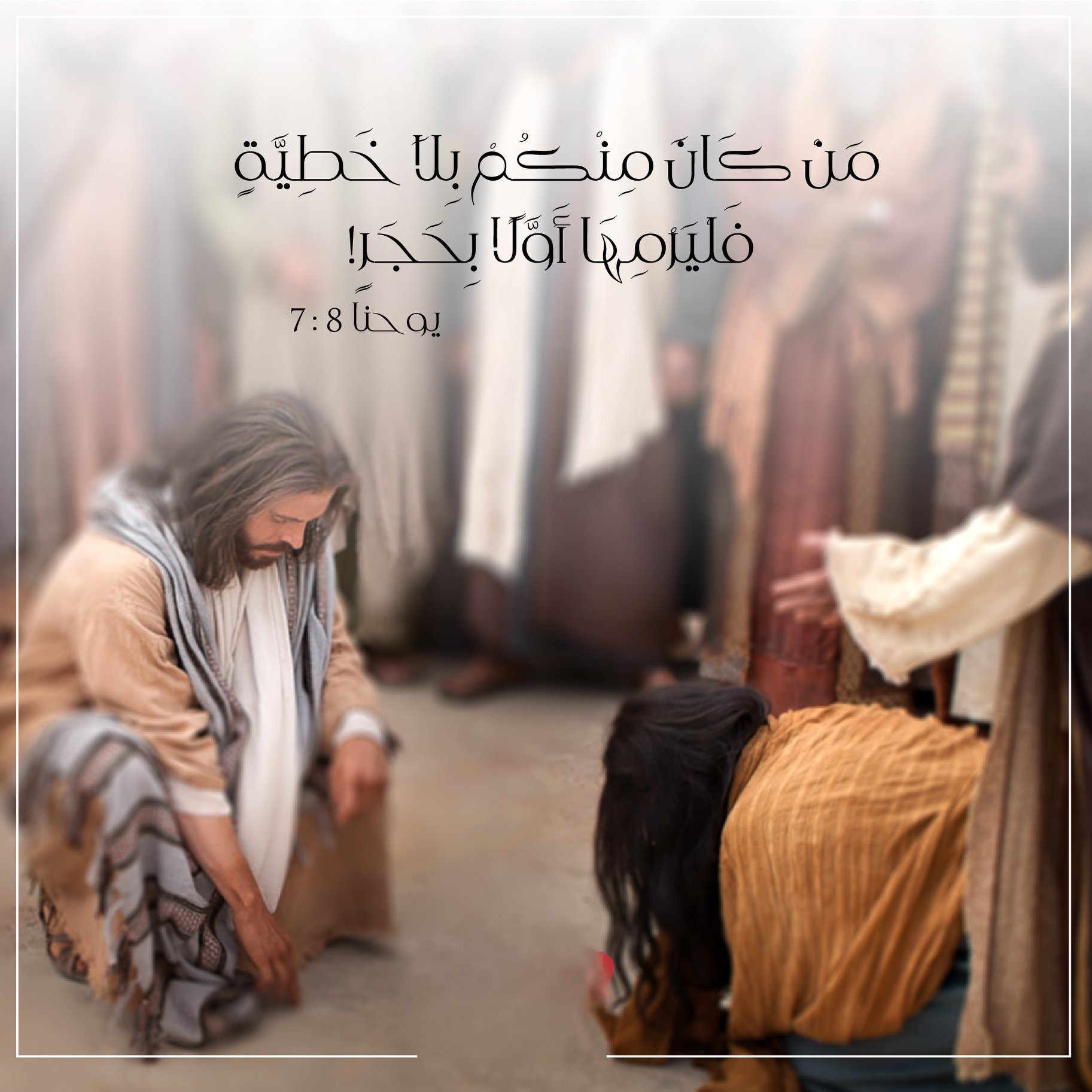 لذلك قال لهم الرب : من كان منكم بلا خطيئة فليرجمها بحجر ….