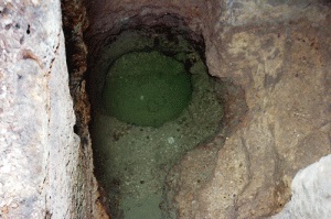 ويضيف مدير الآثار أنه في تلك الفترة عُثر أيضاً على مدفن عائلي يعود إلى الفترة الرومانية، ضم معالم كنيسة غير مكتملة حفرت وسط بهو المدفن، وهي صغيرة الحجم أبعادها: عمق 260 سم وطول 240 سم وعرض 150 سم، ويؤدي إليها درج محفور بالصخر مؤلف من 9 درجات، وفي جدارها الشمالي هيكل، وعند أسفل جدارها الشرقي توجد معالم لبركة دائرية الشكل معمرة بمدماك من الحجارة الصغيرة، وسطحها مغطى بــ 5 ألواح حجرية مستطيلة الشكل غير مشذبة، طول الواحدة متر تقريباً وعرضها نصف متر.