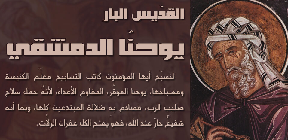 • 4 كانون الأول : القديس يوحنا الدمشقي