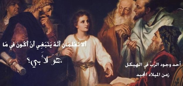 إنجيل القدّيس لوقا02/من41حتى52/كانَ أَبَوَا يَسُوعَ يَذْهَبَانِ كُلَّ سَنَةٍ في عِيدِ الفِصْحِ إِلى أُورَشَليم. ولَمَّا بَلَغَ يَسُوعُ ٱثْنَتَي عَشْرَةَ سَنَة، صَعِدُوا مَعًا كَمَا هِيَ العَادَةُ في العِيد. وبَعدَ ٱنْقِضَاءِ أَيَّامِ العِيد، عَادَ الأَبَوَان، وبَقِيَ الصَّبِيُّ يَسُوعُ في أُورَشَلِيم، وهُمَا لا يَدْرِيَان. وإذْ كَانَا يَظُنَّانِ أَنَّهُ في القَافِلَة، سَارَا مَسِيرَةَ يَوْم، ثُمَّ أَخَذَا يَطْلُبانِهِ بَيْنَ الأَقارِبِ والمَعَارِف. ولَمْ يَجِدَاه، فَعَادَا إِلى أُورَشَليمَ يَبْحَثَانِ عَنْهُ. وَبعْدَ ثَلاثَةِ أَيَّام، وَجَدَاهُ في الهَيكَلِ جَالِسًا بَيْنَ العُلَمَاء، يَسْمَعُهُم ويَسْأَلُهُم. وكَانَ جَمِيعُ الَّذينَ يَسْمَعُونَهُ مُنْذَهِلينَ بِذَكَائِهِ وأَجْوِبَتِهِ. ولَمَّا رَآهُ أَبَوَاهُ بُهِتَا، وقَالَتْ لَهُ أُمُّهُ: «يا ٱبْنِي، لِمَاذَا فَعَلْتَ بِنَا هكَذا؟ فهَا أَنَا وأَبُوكَ كُنَّا نَبْحَثُ عَنْكَ مُتَوَجِّعَين!». فَقَالَ لَهُمَا: «لِمَاذَا تَطْلُبَانِنِي؟ أَلا تَعْلَمَانِ أَنَّهُ يَنْبَغِي أَنْ أَكُونَ في مَا هُوَ لأَبي؟». أَمَّا هُمَا فَلَمْ يَفْهَمَا الكَلامَ الَّذي كَلَّمَهُمَا بِهِ. ثُمَّ نَزَلَ مَعَهُمَا، وعَادَ إِلى النَّاصِرَة، وكانَ خَاضِعًا لَهُمَا. وكَانَتْ أُمُّه تَحْفَظُ كُلَّ هذِهِ الأُمُورِ في قَلْبِهَا. وكَانَ يَسُوعُ يَنْمُو في الحِكْمَةِ والقَامَةِ والنِّعْمَةِ عِنْدَ اللهِ والنَّاس.