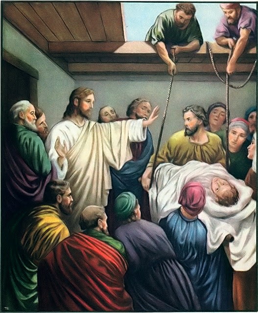 يبدأ يسوع بشفاء الشّيء الأساسيّ الذي هو مصدر المعاناة الشّديدة للمشلول: القلب. ويؤكّد نفسه باعتباره إلهًا، في بيئة معادية إلى حدّ ما وغير مصدّقة لحقيقة طبيعته.