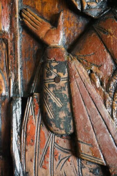 منحوتة على الخشب، وتظهر كيف كانت عند اكتشافها، قبل ترميم بسيط لها. سحرها لا يحتاج لتعليق .