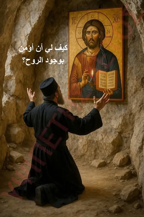 وسأل الراهبَ كيف لي أن أؤمن بوجود الروح؟ هل تُرى؟ هل تُحَسّ؟ وما إلى ذلك من الأسئلة. وختم قائلاً: أعطني جواباً حتى أؤمن.