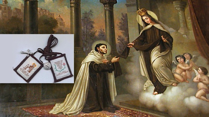 “يا زهرة الكرمل وكرماً سخيًّا، يا عون النّصارى وبهاء السّماء، يا أمًّا حنونًا وبتولاً نقيّة، أبسطي حمايتك على رهبانيّتك…”، كلمات صادقة توجّه بها رئيس رهبانيّة سيّدة جبل الكرمل القدّيس سمعان ستوك إلى مريم العذراء، أمام خطر إلغاء الرّهبانيّة إبّان انتقالها من جبل الكرمل في الشّرق إلى مناسك الغرب. صلواته اليوميّة الملحّة، جعلت العذراء تستجيب، فظهرت له ومنحته “إنعام ثوب الكرمل” قائلة: “هذا الإنعام لك ولأبنائك من بعدك. كلّ من يموت لابسًا هذا الثّوب لن يذوق عذاب النّار، بل يخلص”.