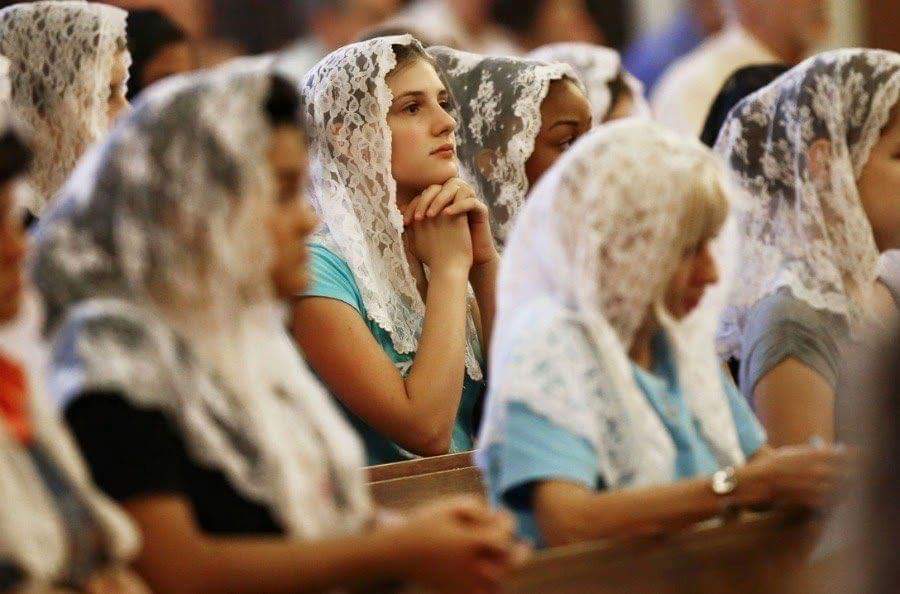 يقول الأب القديس الإيطالي بيّو في الذبيحة الإلهية أي القداس : ” الملائكة تركع وتغطي بجوانحها وجهها أمام هيبة الله…لم يكن يناول أو يعرف النساء الغير محتشمات… فقد كان يقول يجب أن تكون تنورتها ١٥ سنتمر تحت الركبة.