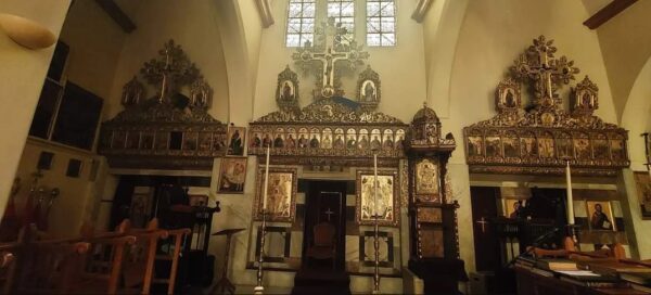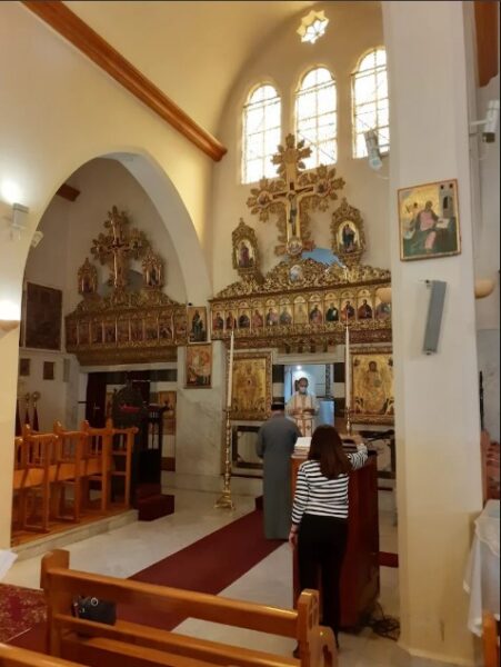 وللكنيسة أيقونسطاس من خشب مزخرف، وتمتاز بأيقوناتها الخلّابة ذات الطّابع الشّاميّ، وبجوّها الدّافئ الخشوعيّ.