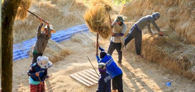 أيُّها الربُّ إِلهُنا ينبوعُ الخيرات، يا من بحنوِّهِ وجودتِهِ أَمرَ الأرضَ أنْ تُخرجَ ثمرًا، بارك † هذا البيدرَ وكثِّرْ حَصادَ عبيدِكَ. إِملأْ أهراءَهُمْ مِن كلِّ ثمرٍ جيِّد، ومِن الحنطةِ والخمرِ والزيت. واحفظهُمْ معَ جميعِ ذويهم مِن كُلِّ محنة. وأَنِرهُم بمعرفتِكَ. لكي يُرضوكَ في كُلِّ شيء فيؤهَّلوا لخيراتِكَ الأبديّة لأنّهُ قد تبارَكَ وتمجَّدَ اسمُكَ الجديرُ بكلّ كرامةٍ والعظيمُ الجلال، أيُّها الآب † والابنُ † والروحُ القدس † الآنَ وكلَّ أوانٍ وإلى دهرِ الداهرين. آمين