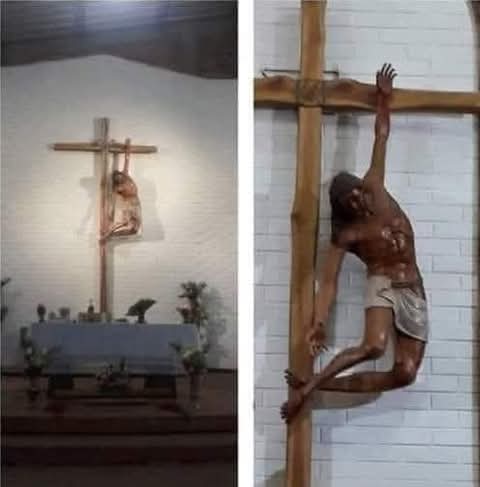 لكن الغريب، عندما رفض الكاهن أن يحلّ الخاطئ، سمع فجأة همسة من على الصليب. ولدهشته انسحبت يمين يسوع فجأة عن الصليب وباركت الخاطئ. وسمع الكاهن صوتًا يصدر عن المصلوب قائلًا: “أنا من سفك دمه عن هذا الشخص وليس أنت”.