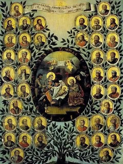 الأيقونة المرفقة تُمثِّل “شجرة العائلة” للسيد المسيح، وفيها نشاهد أجداد المسيح الذين جاء من نسلهم بحسب الجسد، كما وردت أسماؤهم في الفصل الأول من إنجيل متّى، وبينهم إبراهيم وداود وسليمان… وجميعهم يتطلّعون إلى المسيح المولود من البتول مريم في بيت لحم، الذي يتوسّط الشجرة، ويحتلّ مركز الأيقونة. فالمسيح يسمو ويعلو على كل الأنبياء، لأنه هو خالقهم وسيّدهم، ولم يأتِ ليؤسس “ديانة إبراهيميّة” بل ليقيم ملكوت الله على الأرض.