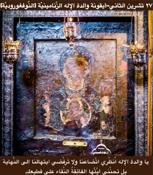 بمعجزة تمت بايقونة والدة الاله الزنامينية. فتخليد لذكرى هذه المعجزة الباهرة عيّن رئيس الكهنة يوحنا ان يُعيد سنويّاً في اليوم السابع والعشرين من شهر تشرين الثاني لايقونة والدة الاله الزنامينية في مدينة نوفغورود العظيمة وسماه يوم خلاص نوفغورود ويوم قصاص المحاربين للمؤمنين.