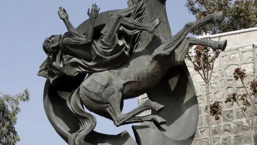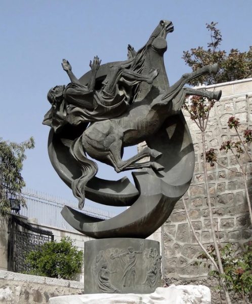 ويصور لحظة سقوطه عن حصانه عند ظهور السيد المسيح له على طريق دمشق، وهو عمل فني بارز يمثل موقعاً دينياً وسياحياً هاماً، حيث يقع بالقرب من دير القديس بولس الرسول كيسان موقع وزارة السياحة السورية ويعد محجاً للمسيحيين.