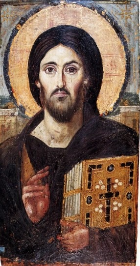 تسمى في اليونانية بانتوكراتور أي “الذي له السلطان على كل شيء”وهي تُعبر عن مصطلحين من العهد القديم لوصف الله إله الصباؤوت والله تعالى. من أجل تصوير هذه الصفات استخدم كاتبو الأيقونات البيزنطيون ميزات، مثل اليد اليمنى المفتوحة، التي يمكن أن تنقل إحساسًا بالسلطة والقدرة. هذه الصورة هي أقدم أيقونة معروفة عن “المسيح بانتوكراتور” في العالم. قد تشير التعبيرات المختلفة التي تظهر على الجانبين الأيمن والأيسر من وجه يسوع إلى طبيعته المزدوجة كإنسان وإله. تم رسمها على لوح خشبي خلال القرن السادس وهي محفوظة حاليًا في دير القديسة كاترين في جبل سيناء في مصر، من أقدم الأديرة في العالم.