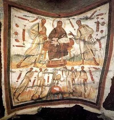 تعود هذه اللوحة إلى القرن الرابع، وتُظهر يسوع جالسًا بين بطرس وبولس، وُجدت في سراديب القدّيسين مارسلينو وبطرس على طريق لابيكانا في روما. وفي أسفل الوحة أربعة شهداء جوجينيوس، بطرس، مارسلينو، وتيبورتيوس المدفونين في هذا السرداب. وقد صوّرهم الرسام وهم يُشيرون إلى حمل الله على مذبحه السماوي.