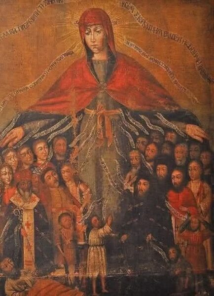 تُعرف هذه الأيقونة بـ “بوكروف” (Pokrov) بالروسية، أي الغطاء أو الحماية، وهي أيقونة عريقة تحظى بإكرام كبير في التقليد البيزنطي والروسي، تذكاراً لحمايتها للمؤمنين.