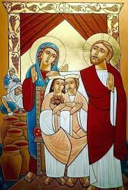 قال يوحنّا الرّسول: في اليوم الثالث، كان عرسٌ في قانا الجليل، وكانت أمّ يسوع هناك. ودُعِيَ أيضاً يسوعُ وتلاميذُهُ إلى العُرْس. ونفدَ الخمْر، فقالت ليسُعَ أمُّهُ: “ليس لديهم خَمْر”. فقالَ لها يسوع: “ما لي ولكِ، يا امرأة؟ لم تأتِ ساعَتِي بعْد!” فقَالَتْ أمُّهُ للخَدَم: “مَهْمَا يقُلْ لكم فافعلوه!”. وكان هناكَ ستّةُ أجرانٍ من حَجَر، مُعَدّةٌ لتطهير اليهود، يسَعُ كلّ منها من ثمانين إلى مئة وعشرين وعشرين ليتراً، فقالَ يشوع للخدَم: “إملأوا الأجرانَ ماءً”. فملأُوها إلى فةق. قالَ لهم: “إستَقُوا الآنَ، وقدِّموا لرئيسِ الوليمة” فقَدّموا. وذاقَ الرّئيسُ الماءَ، الّذي صارَ خمْراً – وكان لا يَعْلَمُ من أينَ هُوَ، والخَدَمُ الّذين استَقَوا يعْلَمُون – فَدَعَا إليه العريسَ وقال له: “كلُّ إنسانٍ يقدّمُ الخمرَ الجيّد أوّلاً، حتّى إذا سَكِرَ المدعوّون، يقدّمُ الأقلَّ جودةً، أمّا أنت فقد أبقيتَ الخمْرَ الجيّد إلى الآن!” تلك كانت أولى آيات يسوع، صَنَعَهَا في قَانا الجليل، فأظهَرَ مَجْدَهُ، وآمَنَ به تلاميذُه.