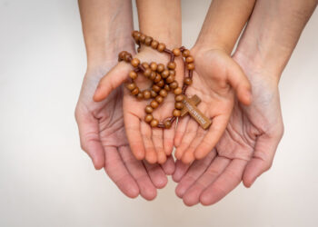 مسبحة الإيمان تستخدم المسبحة الوردية العادية المكونة من 5 أبيات. على الحبة الكبيرة يتلى قانون الإيمان. على الحبات الصغيرة:...