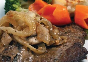 لحم العجل المحمر بالبصل المقادير: - ملعقتان طحين - ست قطع عرضية من لحم ساق العجل - ملعقة...