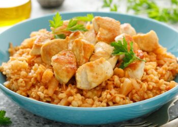 الدجاج مع البرغل المقادير: - دجاجة مقطعة قطع صغيرة - 2 كوب كزبرة خضراء مفرومة - 1 كوب...