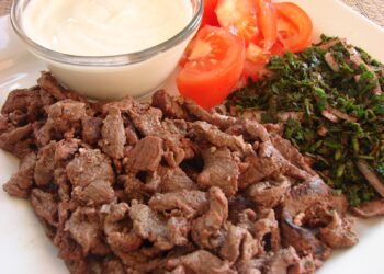 شاورما اللحم البيتوتي المقادير: - قطع لحم خالية العظم، الكمية حسب الرغبة - بصل حسب الرغبة -...