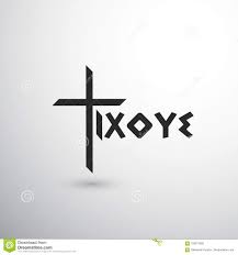 E X O Y E اخثيوس كانت السمكة رمزًا للسيد المسيح والمسيحيين. - الحروف اليونانية لكلمة (سمكة) ἰχθύς (الحروف...